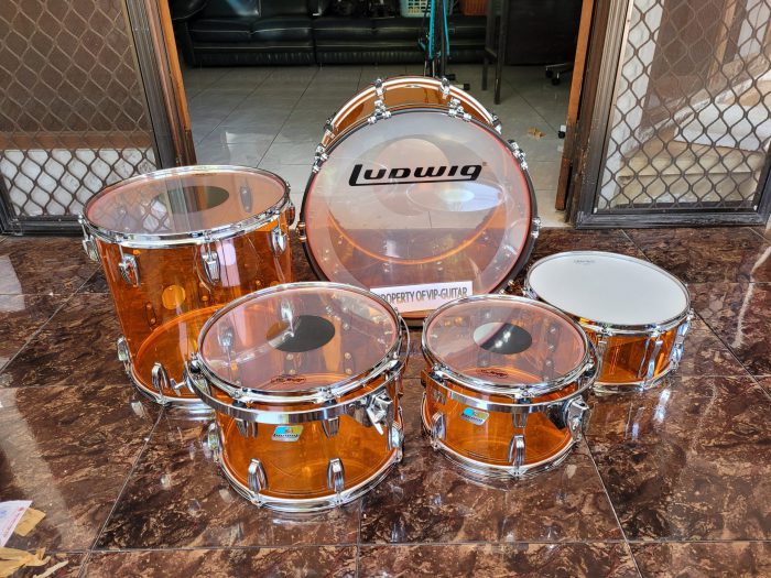 DRUM LUDWIG VISTALITE AMBER ACRYLIC SHELLS 5 PIECES MADE IN USA