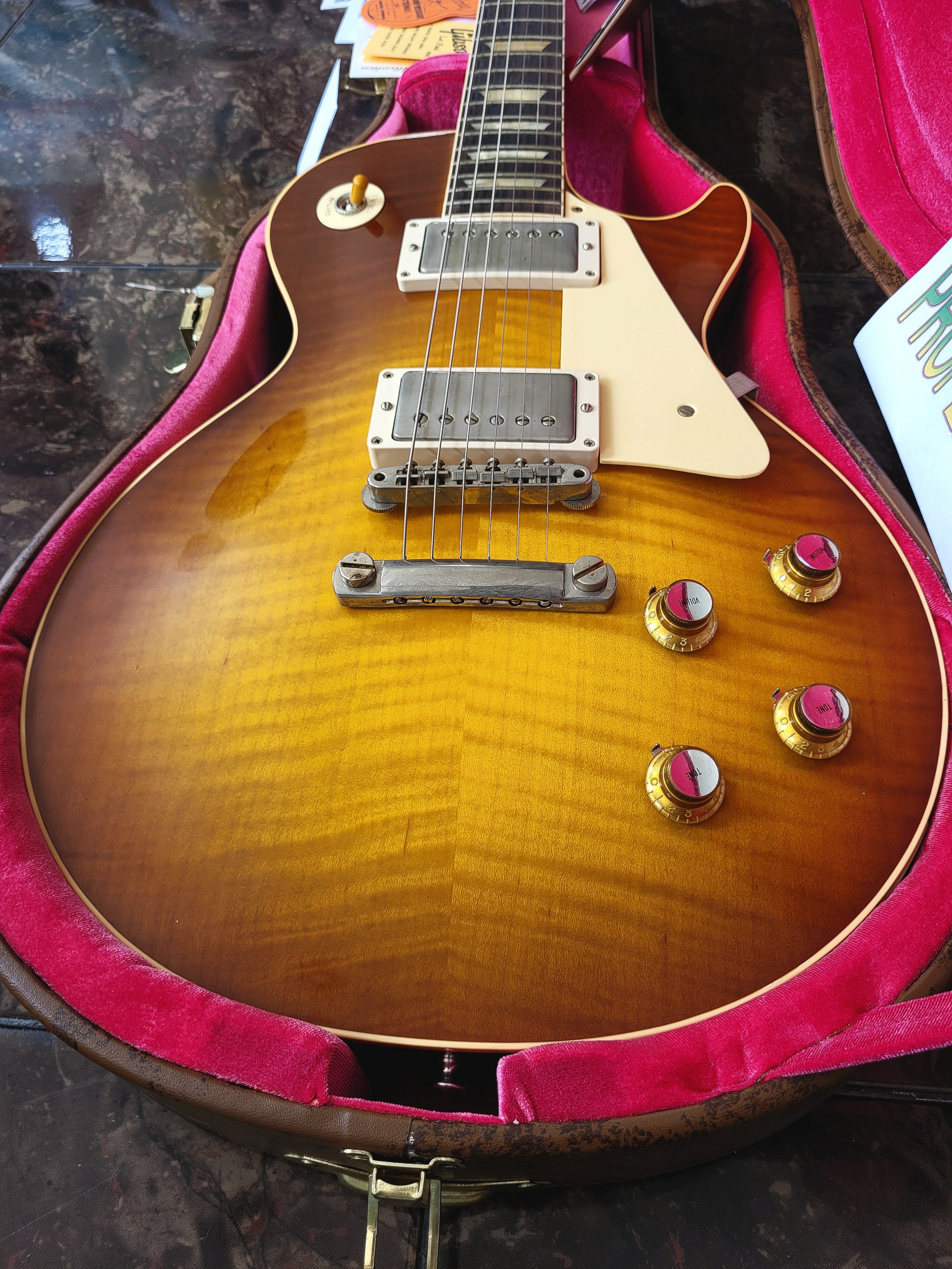 GIBSON CUSTOM SHOP USA SPECIAL ORDER LES PAUL STANDARD 1959 VOS DIRTY LEMON AAAAA GRADE FLAME 1 PIECE MAHOGANY BODY