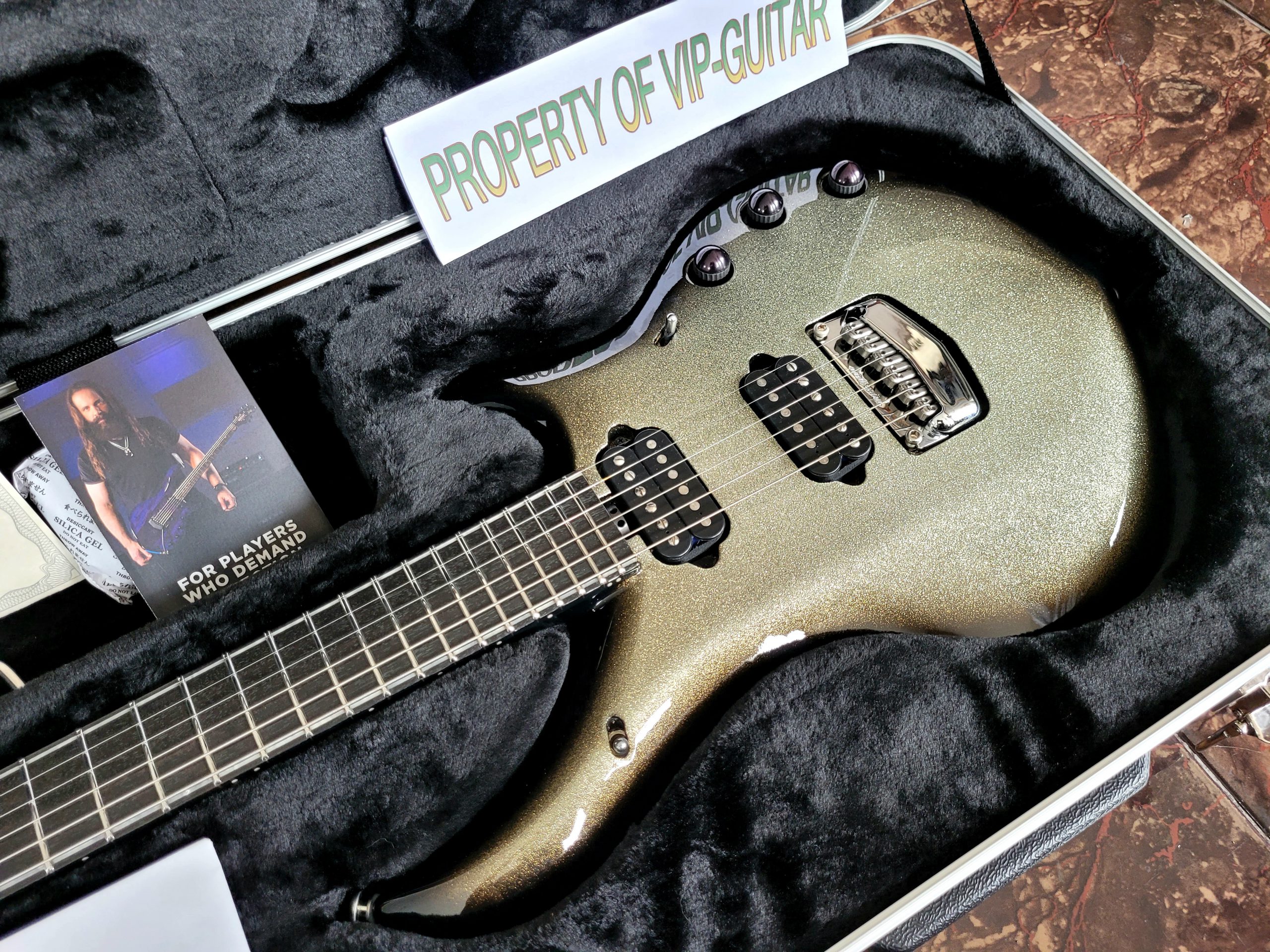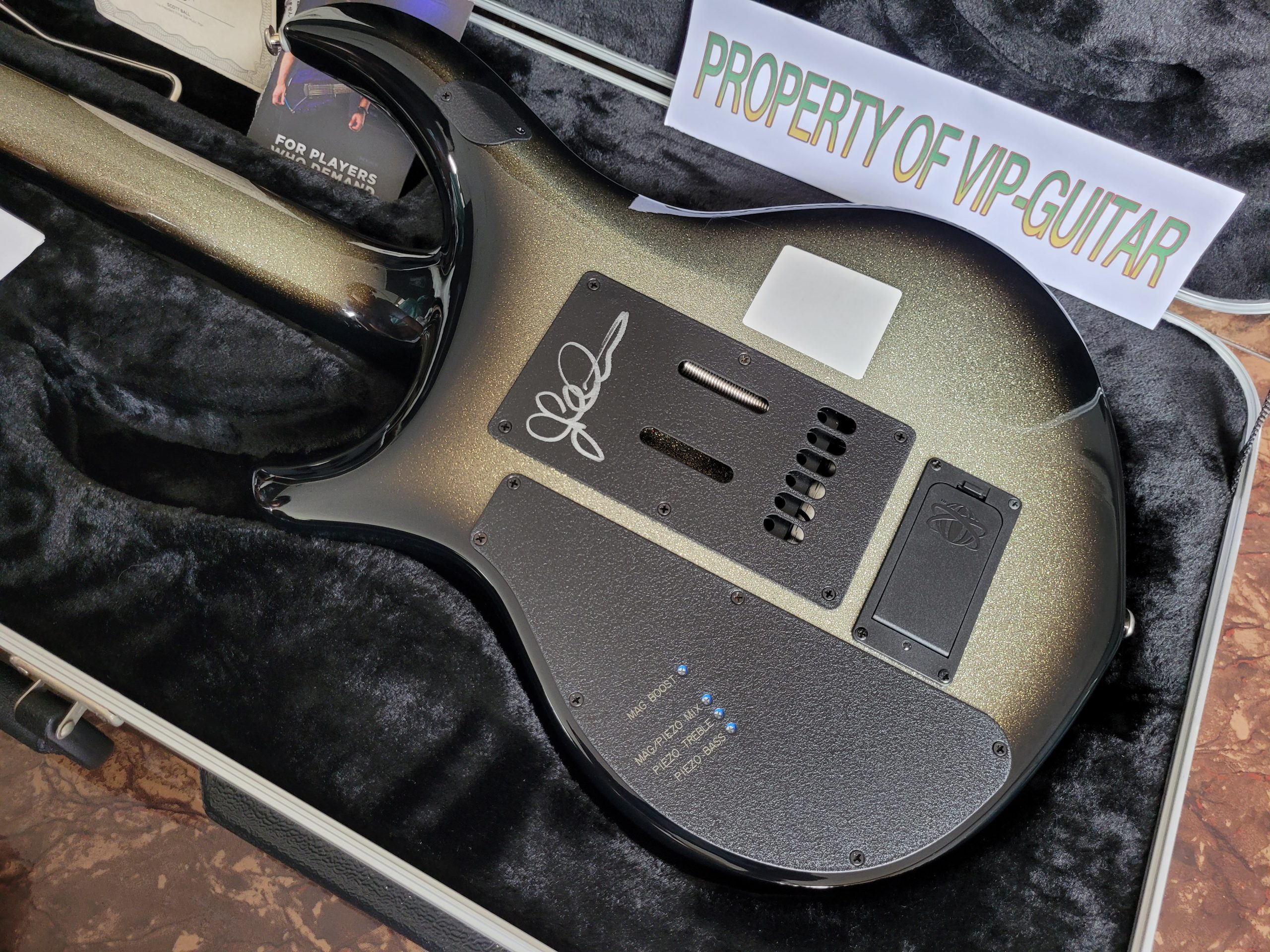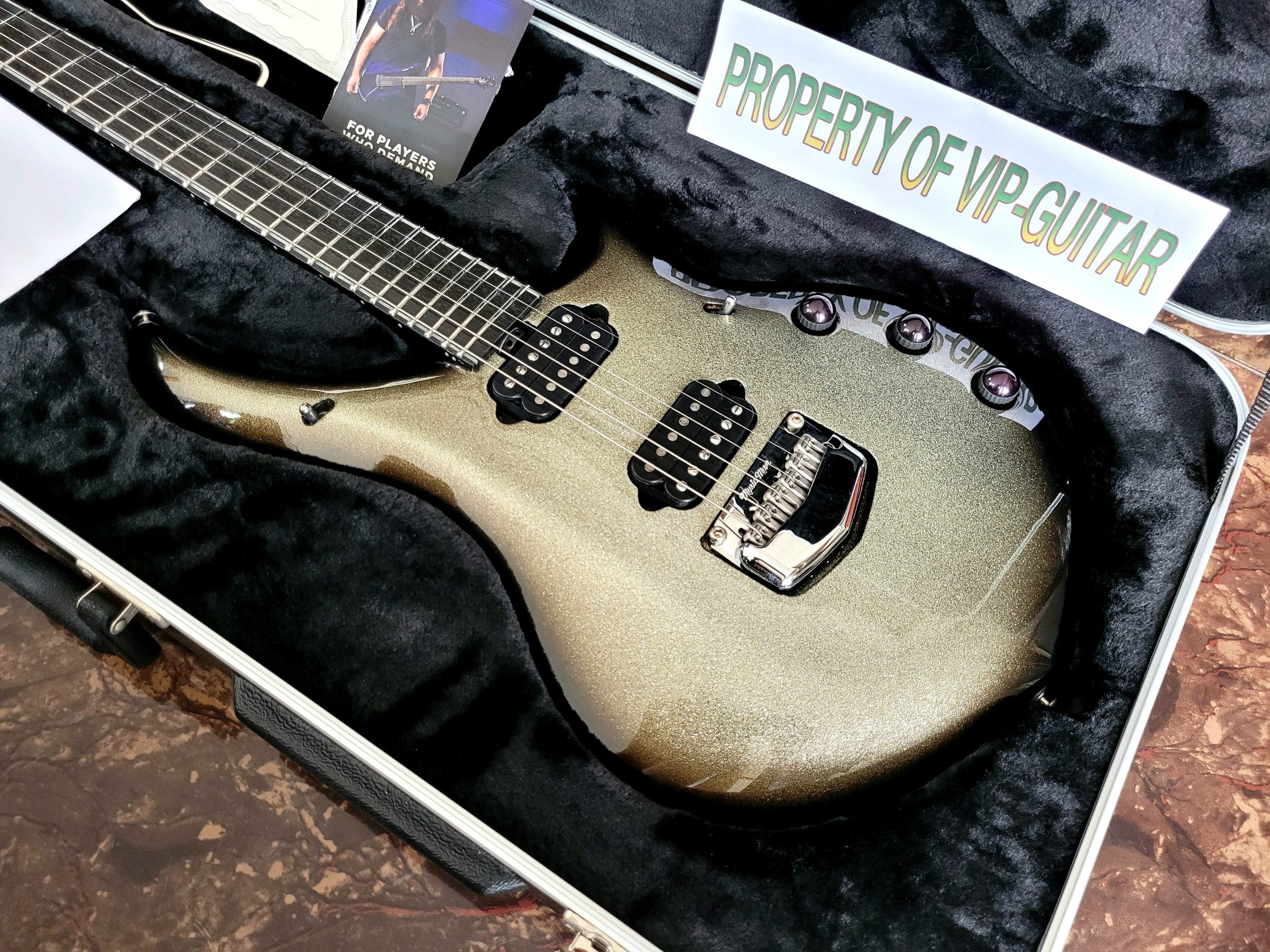 MUSIC MAN USA MAJESTY BFR BALL FAMILY RESERVE AUTOGRAPHED BY JOHN PETRUCCI CHARRED SILVER S/N M08263