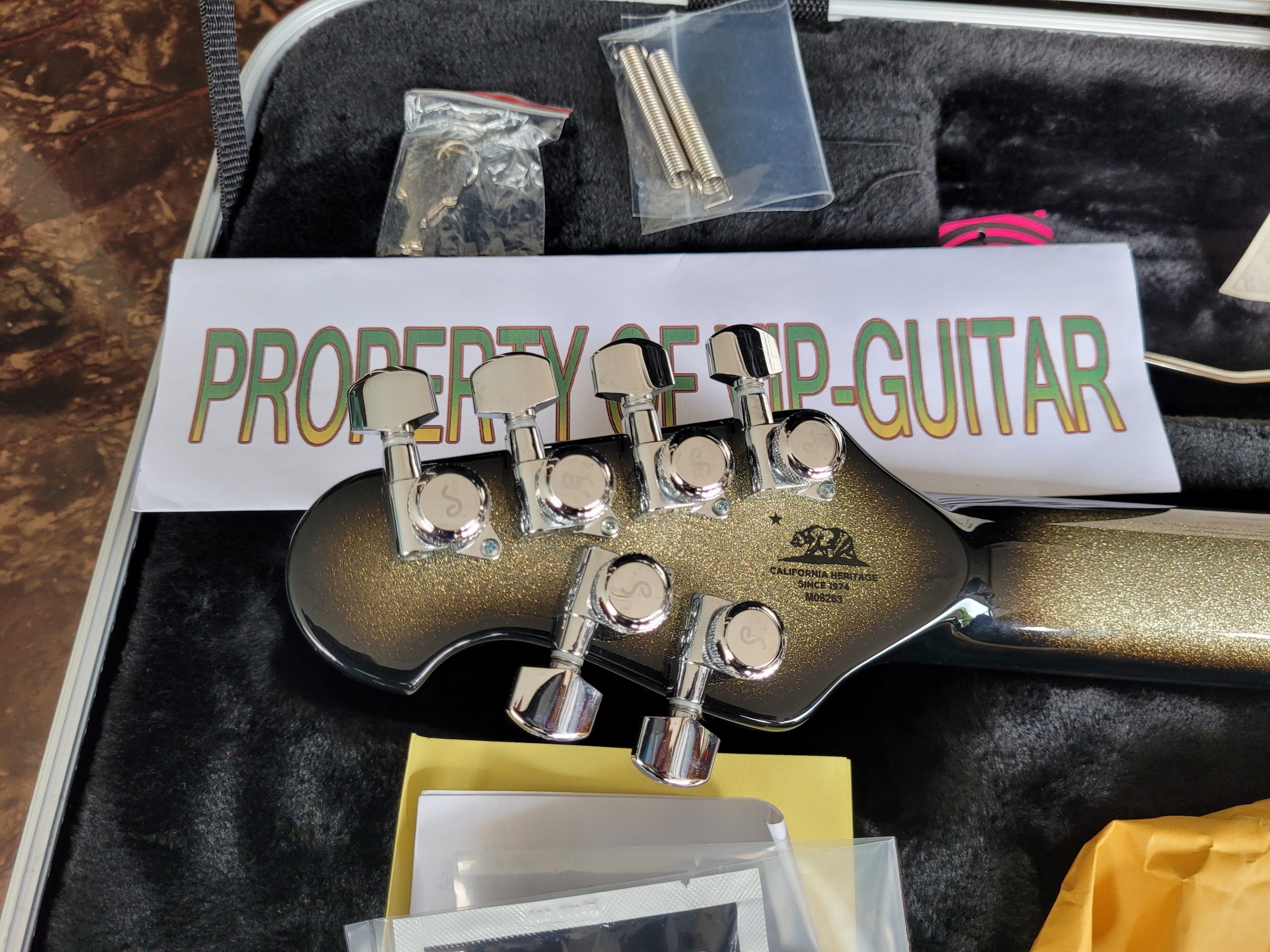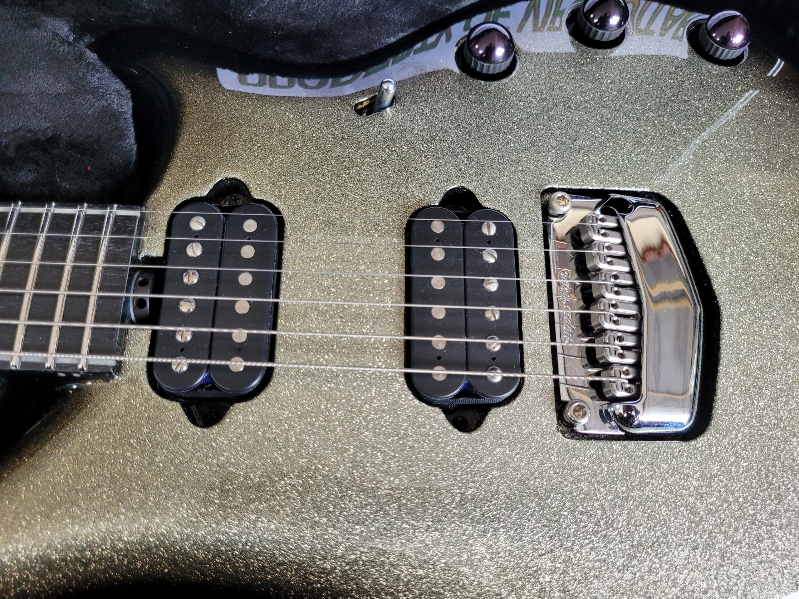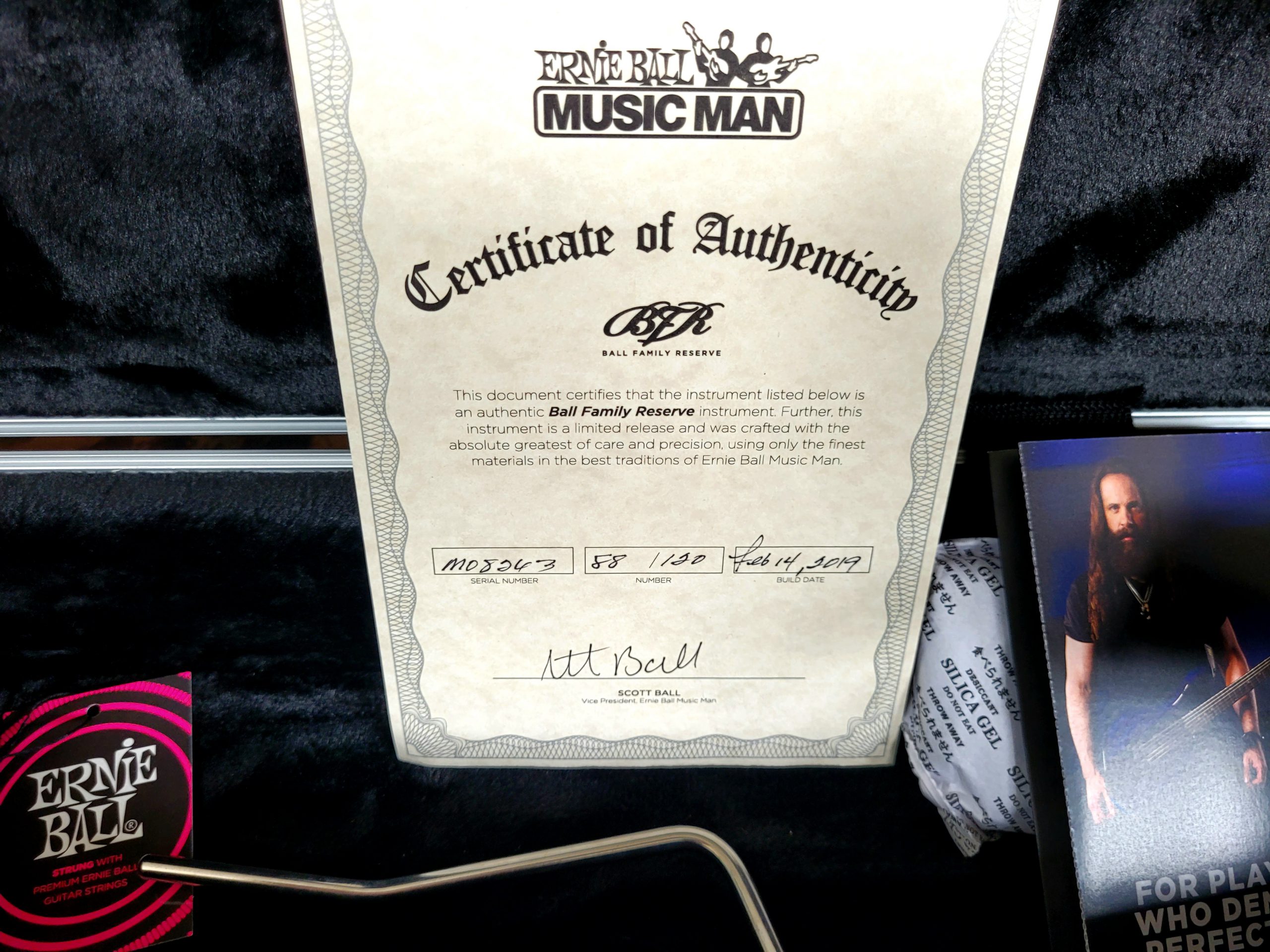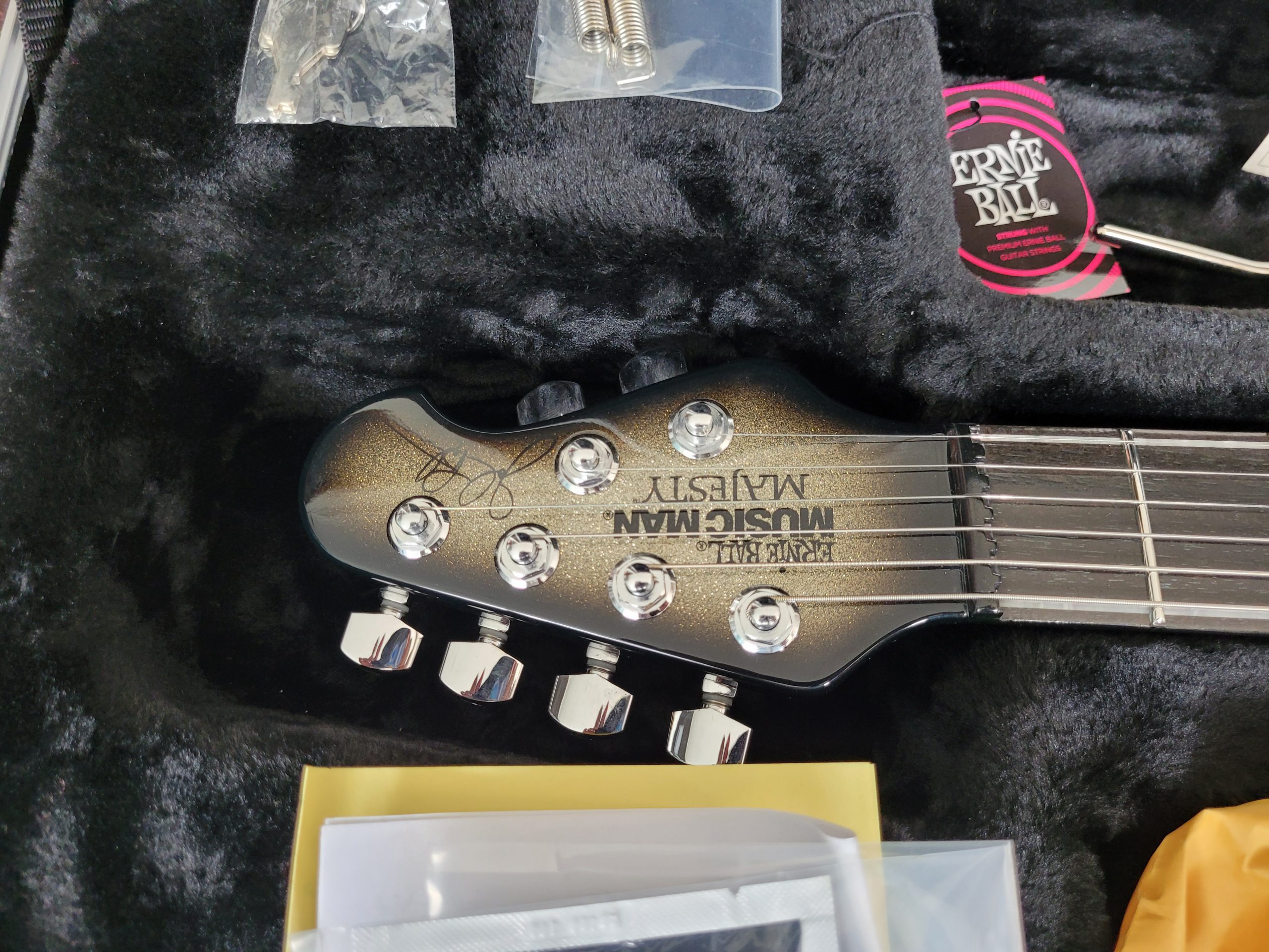 MUSIC MAN USA MAJESTY BFR BALL FAMILY RESERVE AUTOGRAPHED BY JOHN PETRUCCI CHARRED SILVER S/N M08263
